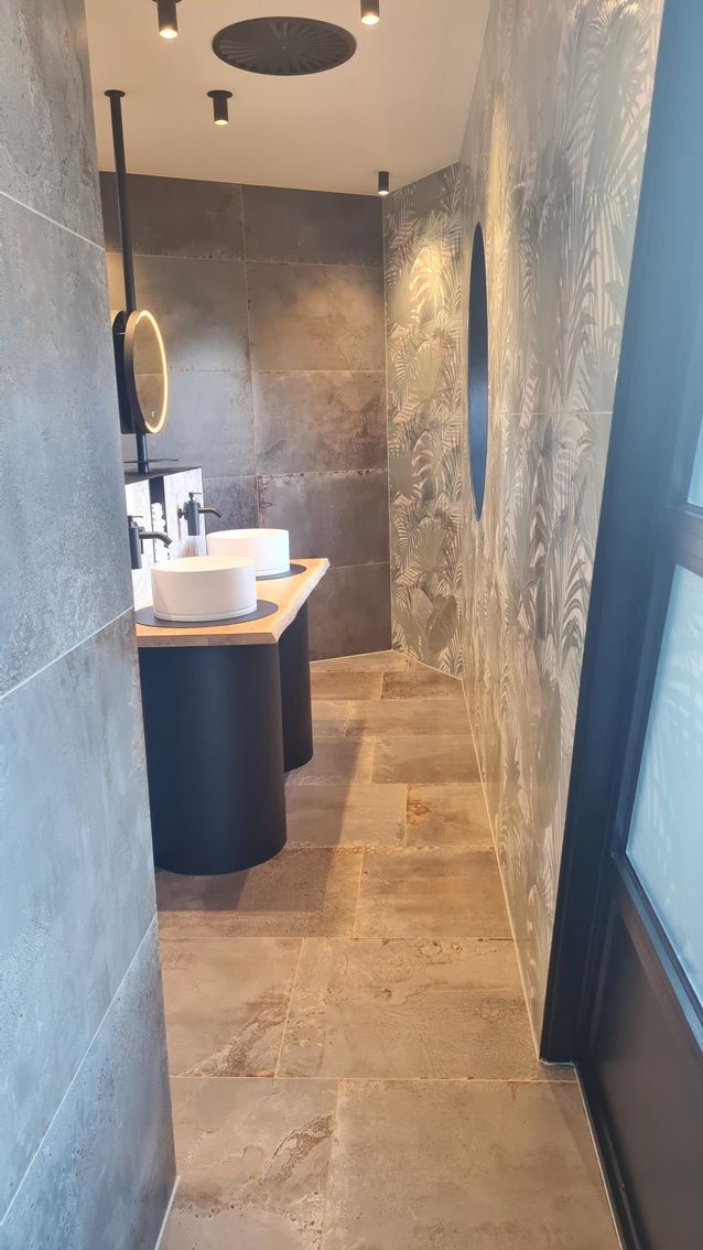 De combinatie van deze verschillende tegelcollecties draagt bij aan de unieke uitstraling van "Inter Duiven." Het resultaat is een ruimte die zowel modern als klassiek, industrieel als natuurlijk en veelzijdig als artistiek aanvoelt, wat zorgt voor een boeiende en aantrekkelijke ambiance.