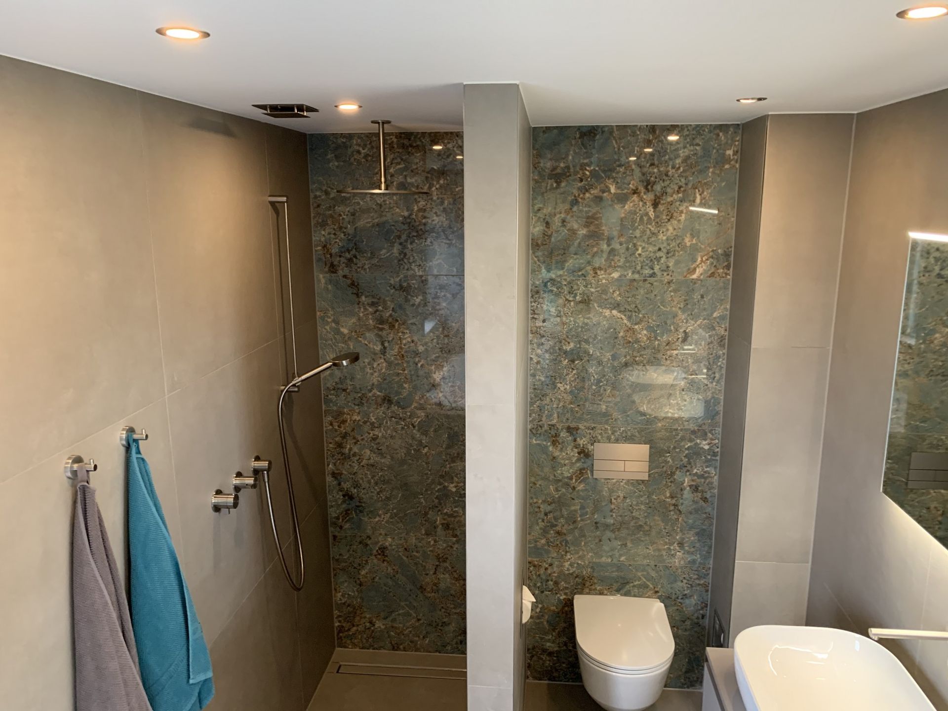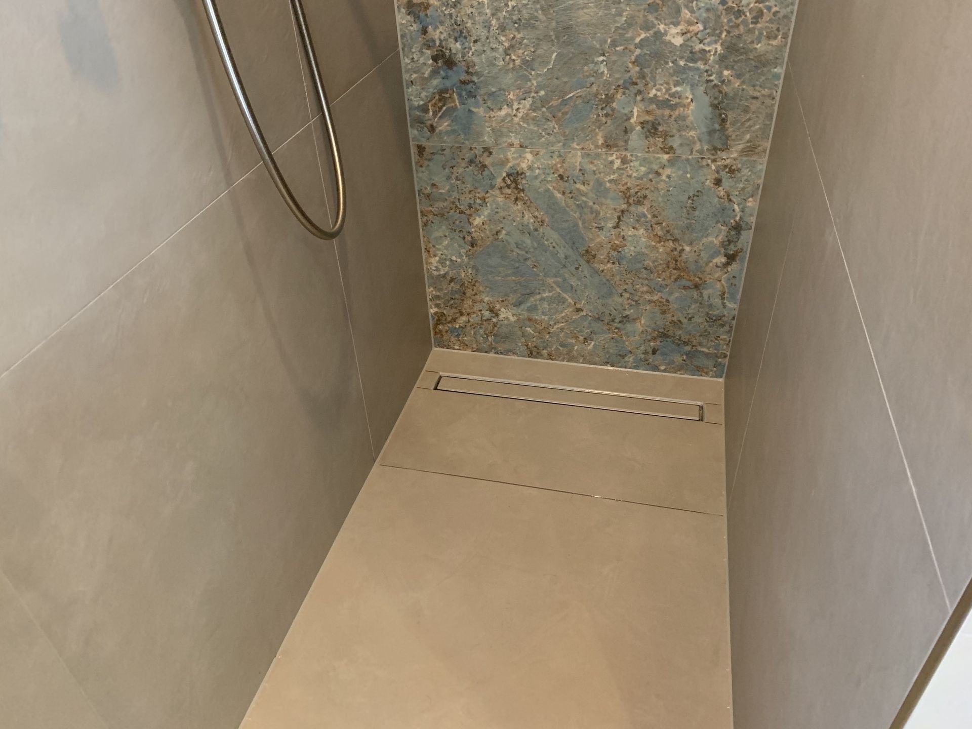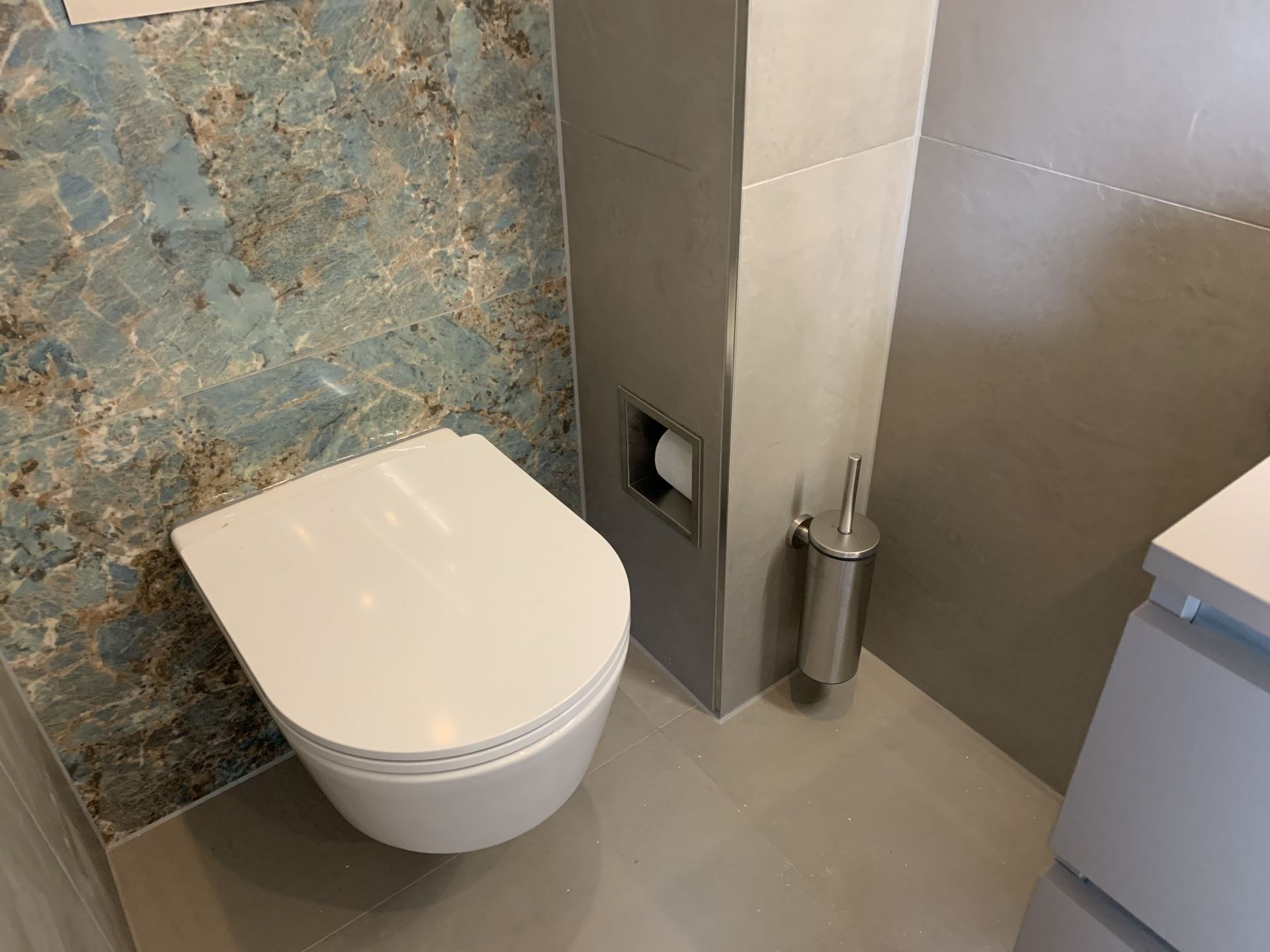 Bij dit project in ’s-Heerenberg is de badkamer een stijlvolle en verfijnde ruimte. De vloer is bedekt met 80x80 Studio Cloud tegels, die een eigentijdse uitstraling bieden. De wanden zijn een lust voor het oog met een combinatie van 60x120 Studio Cloud tegels en 60x120 Etolie polische tegels, waardoor een harmonieuze en elegante sfeer ontstaat.