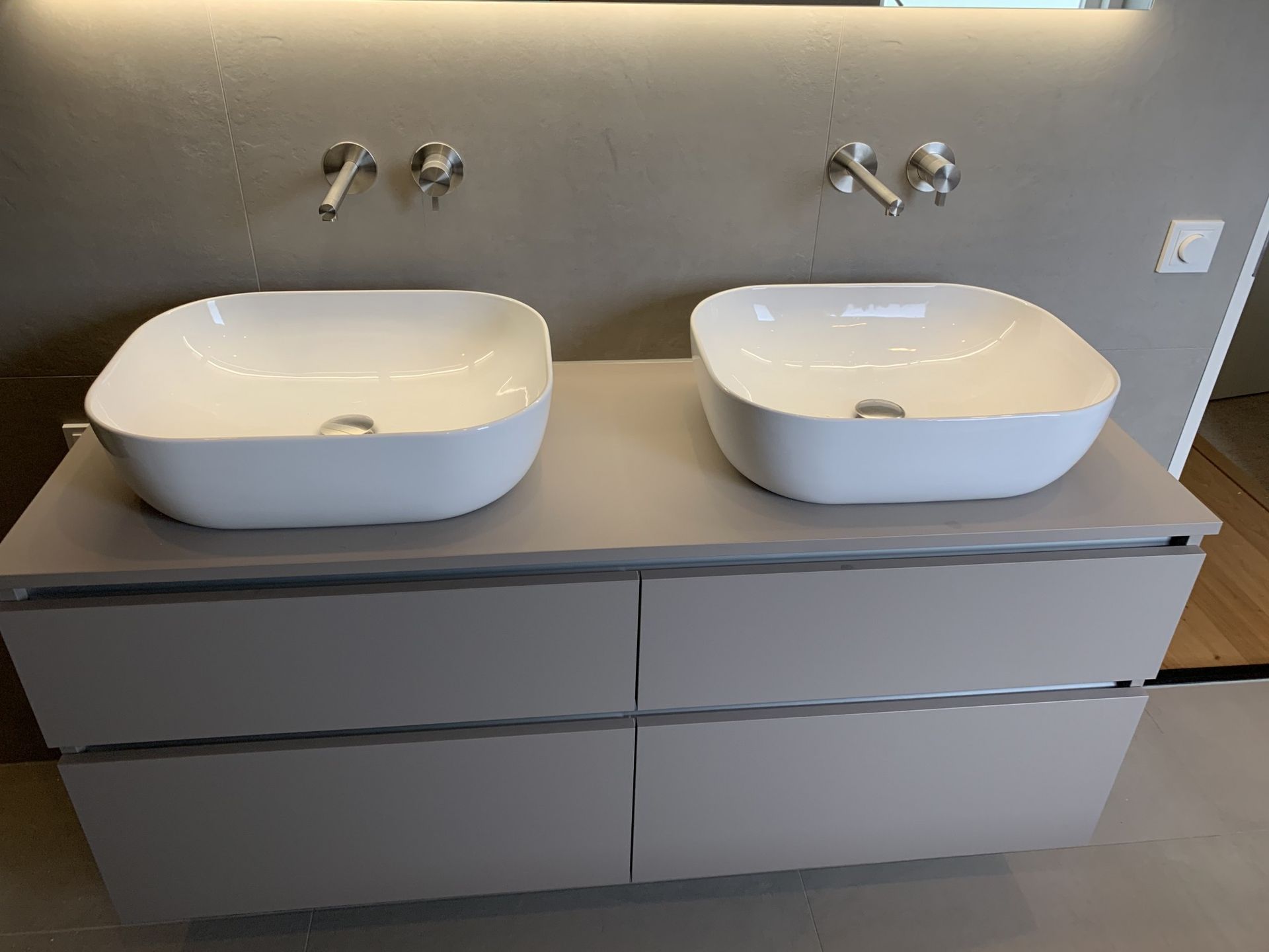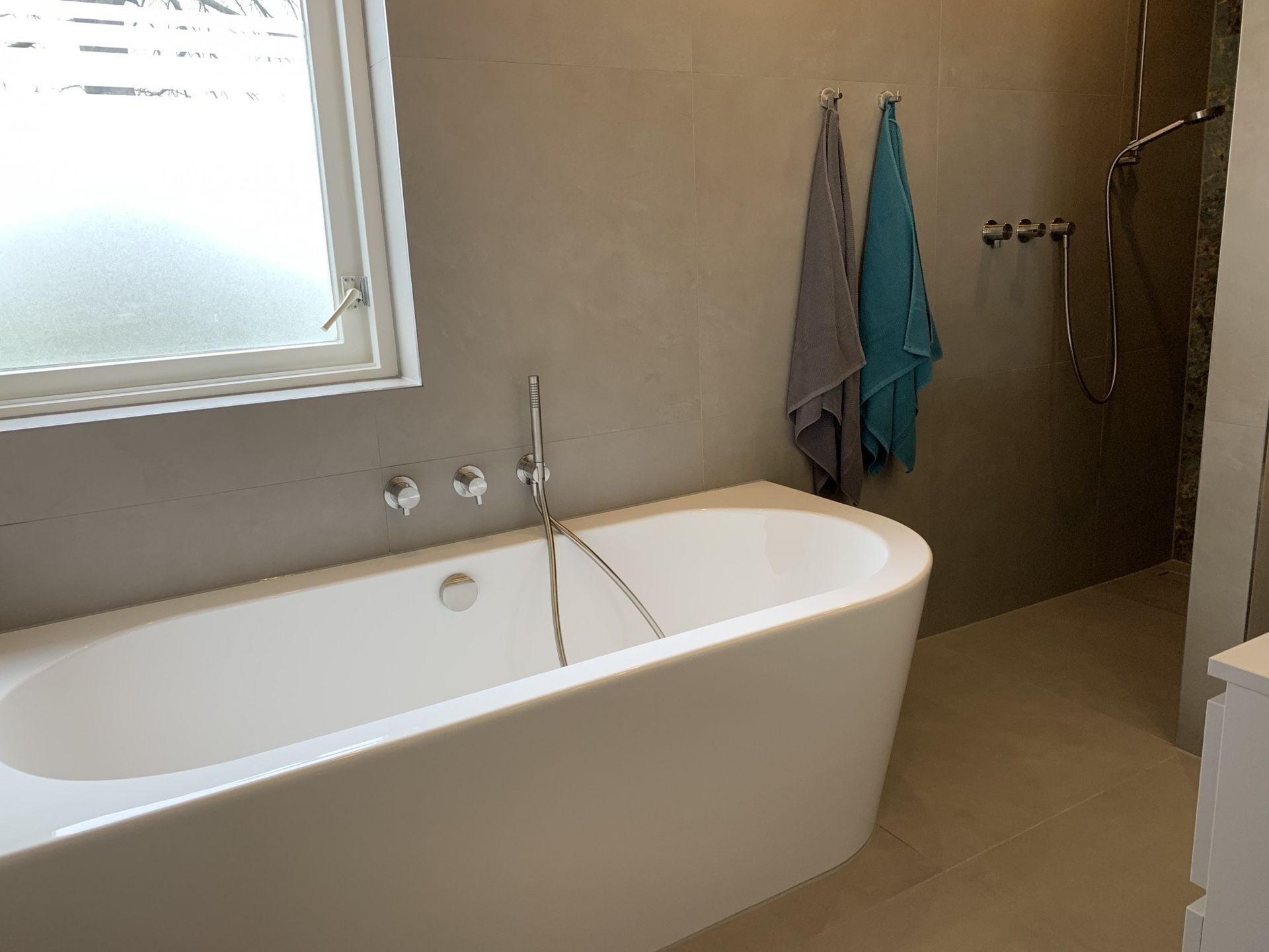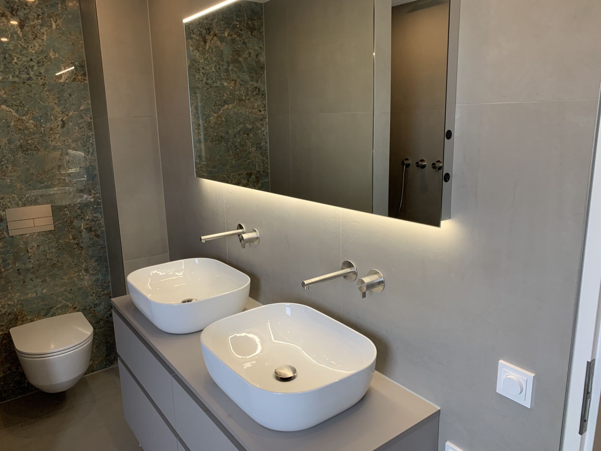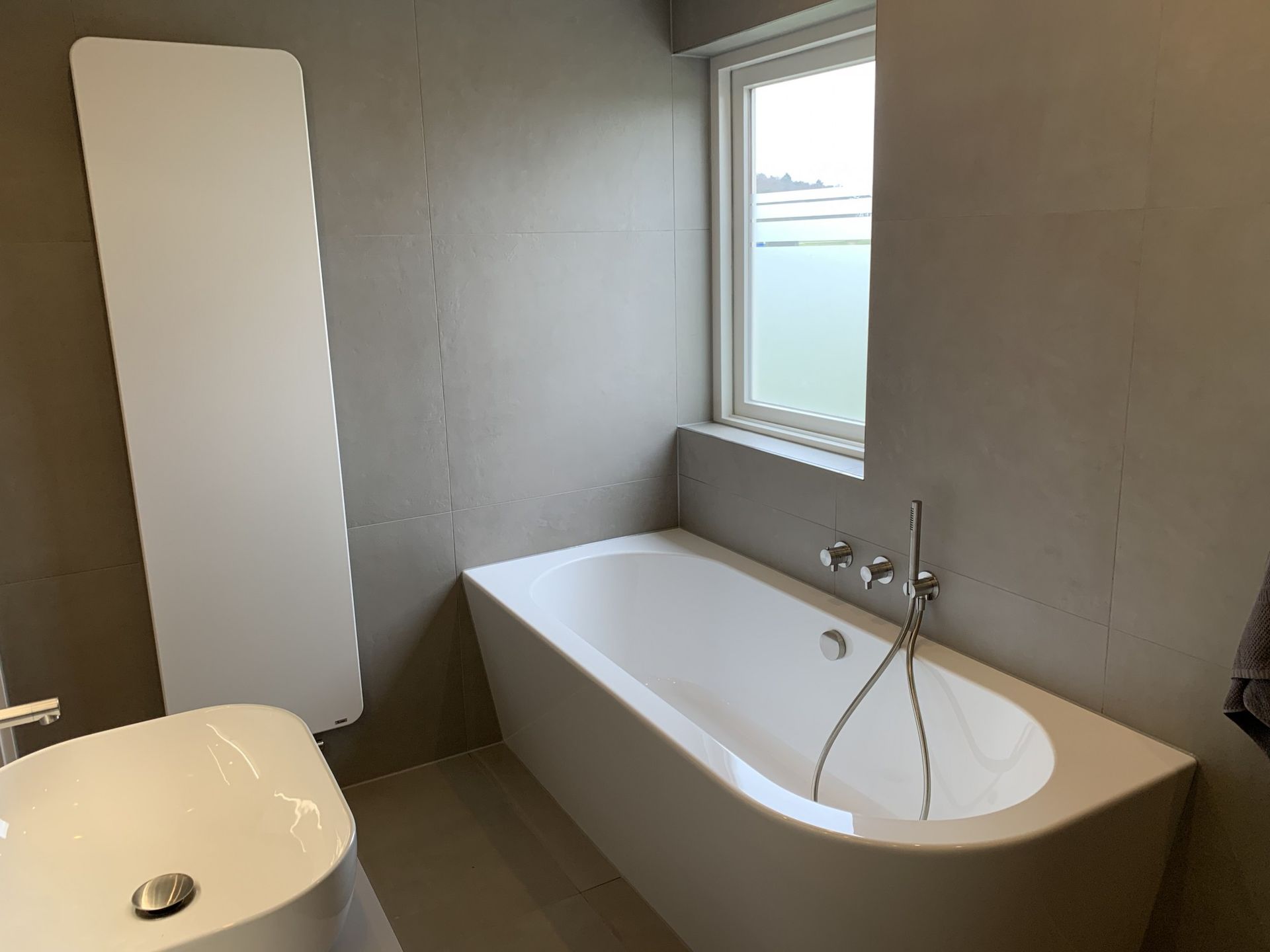 Bij dit project in ’s-Heerenberg is de badkamer een stijlvolle en verfijnde ruimte. De vloer is bedekt met 80x80 Studio Cloud tegels, die een eigentijdse uitstraling bieden. De wanden zijn een lust voor het oog met een combinatie van 60x120 Studio Cloud tegels en 60x120 Etolie polische tegels, waardoor een harmonieuze en elegante sfeer ontstaat.