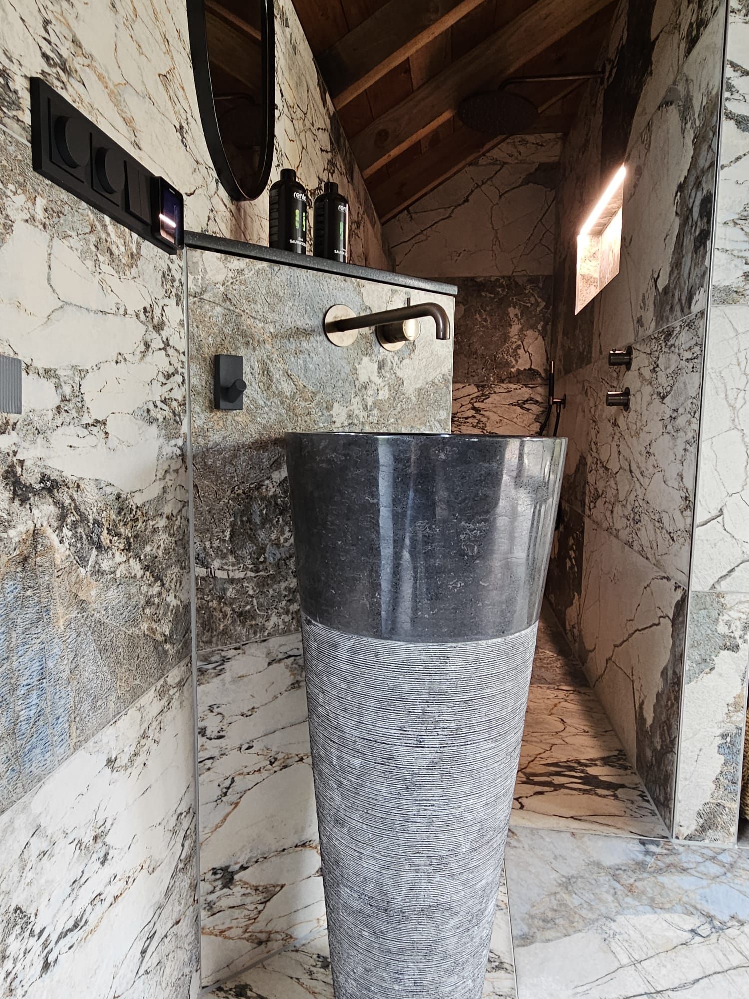 Het MARMI IMPERIALI-project ontwikkelt zich met 6 basiskleuren die de verscheidenheid aan natuurlijk marmer nabootsen. Het valt op door zijn brede formaat en zorgt ervoor dat je een naadloze binnen-buiten continuïteit creëert, vergezeld van sfeervolle decoraties die zijn afgestemd op de basiskleuren.