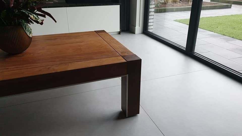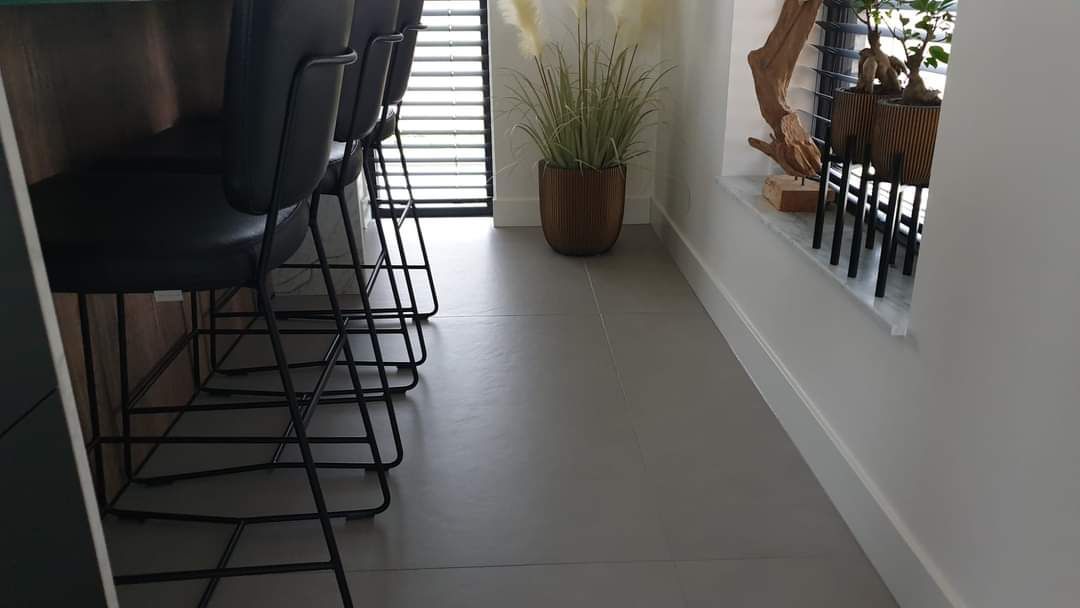 Woning Didam onderscheidt zich door zijn gebruik van 60x180cm cementtegels voor zowel vloeren als wanden, waardoor een eigentijdse en duurzame uitstraling wordt gecreëerd.